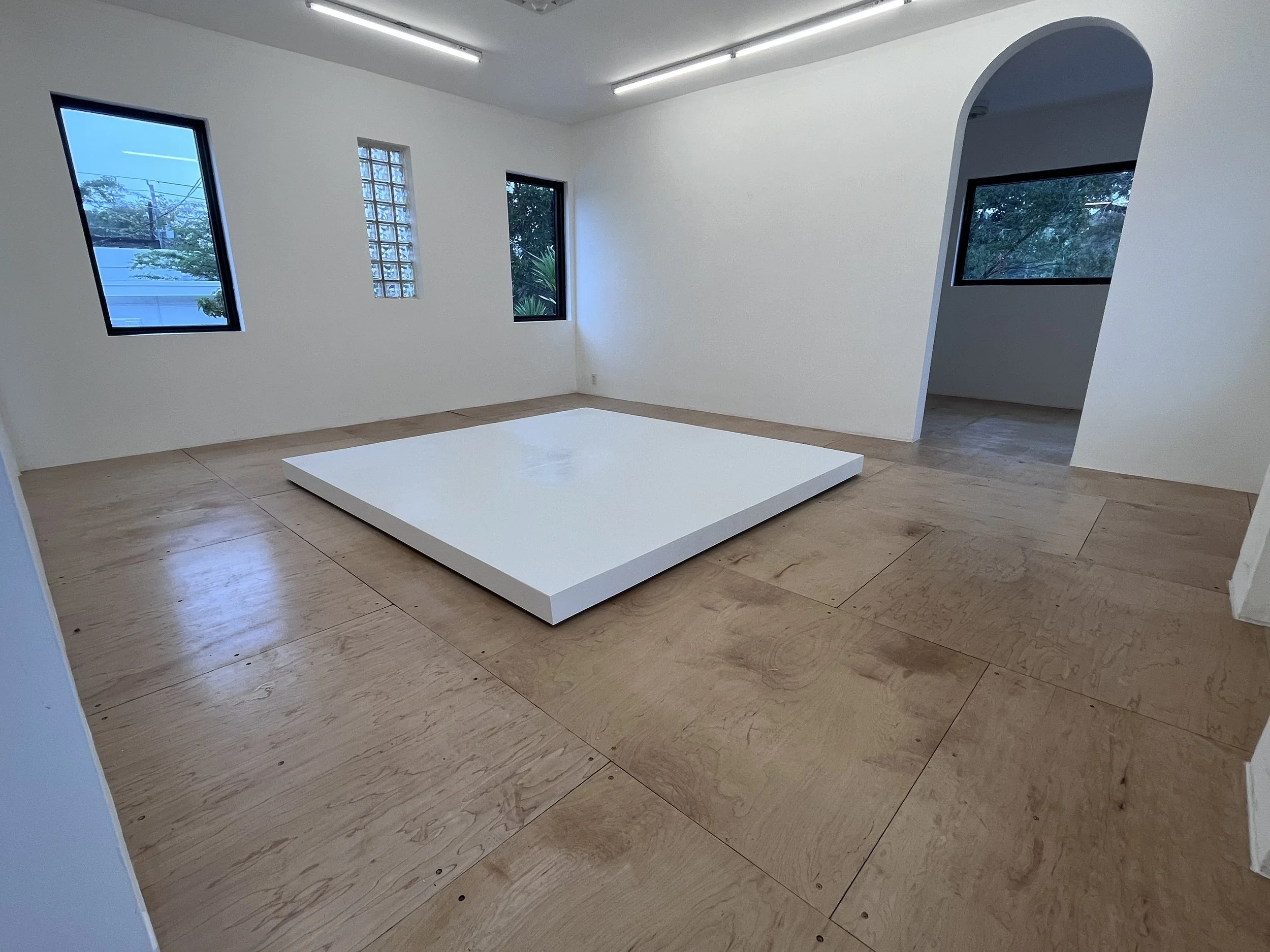 Custom 8’ x 8’ floating pedestal installed on site at Nina Johnson Gallery